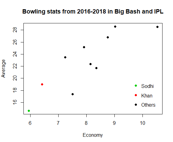 The comparison of Sodhi and Rashid is an interesting one. When they've played against similar opponents, they have had very similar stats. See for example this graph of combined IPL and Big Bash statistics. (This is the 8 players who played a reasonable number of matches in both tournaments over the past 2 years)